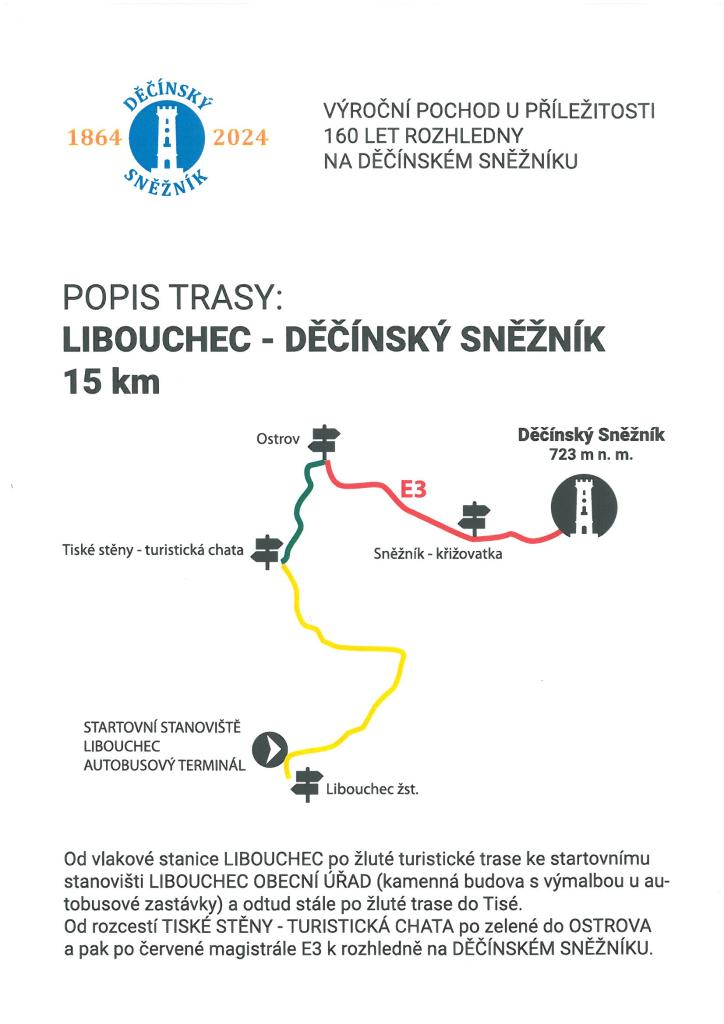 Účastníci pochodu si na startovním stanovišti (autobusové náměstí Libouchec - kamenná zastávka s výmalbou žáků) převezmou startovní lístky, v cíli pak obdrží brožurku o rozhledně a pamětní list. Doprovodný program na rozhledně je v době od 12:00 do 16:00. Vstup na rozhlednu je zdarma.