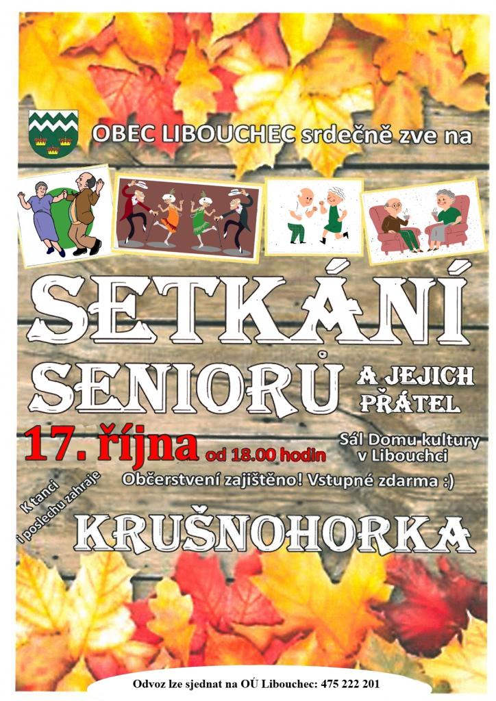 Obec Libouchec srdečně zve na SETKÁNÍ SENIORŮ a jejich přátel. Bližší informace na plakátu