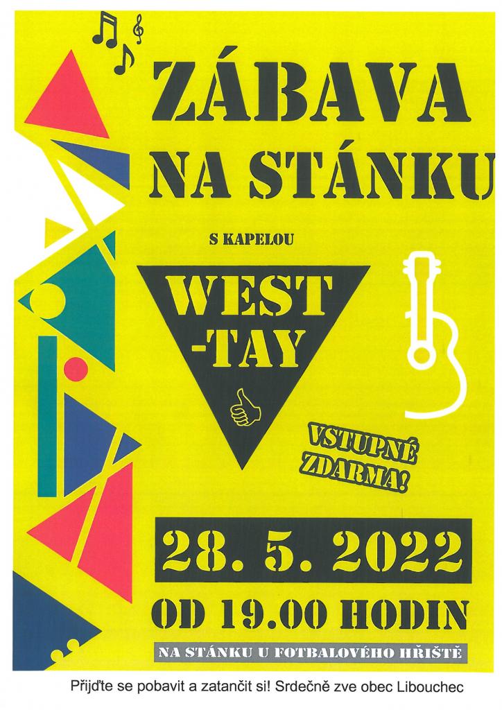 Obec Libouchec pořádá ZÁBAVU NA STÁNKU s kapelou WEST - TAY. Vstupné zdarma. Více na plakátu