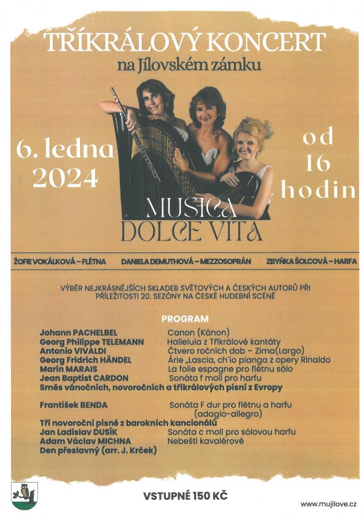 Tříkrálový koncert na Jílovském zámku, který se bude konat 6. ledna 2024 od 16.00 hodin.